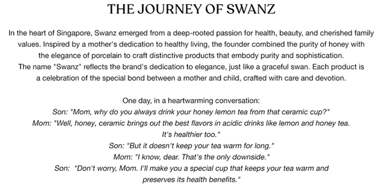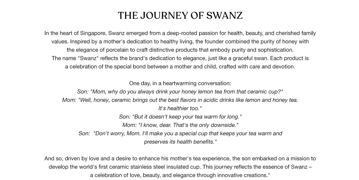 Incorporated in 2009, Swanz Brand is a household brand from Singapore which designed and manufactured porcelain household wares that brings greater health benefits to customers. We care about health as much as you do. We take a lot of attention to one's health. To us, health is the most important thing in life and it is our responsibility to support that.