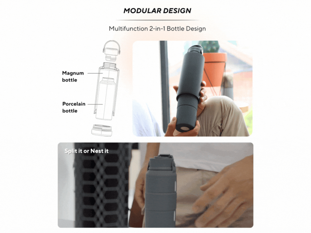 Elevate your hydration with the Magnum Bottle, the world's first detachable bottle crafted for effortless top-to-bottom cleaning, ensuring a bacteria-...